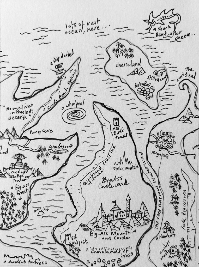In a nonsensical mood, making mad-cap places on paper.